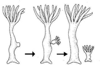 Dalam proses perkembang biakan ini, sebuah tunas kecil akan muncul di tubuh induknya. Setelah dewasa, tunas tersebut akan berpisah dari induknya dan membentu individu baru. Contoh hewan yang berkembang biak dengan tunas yaitu Hydra yang hidup di dalam air.